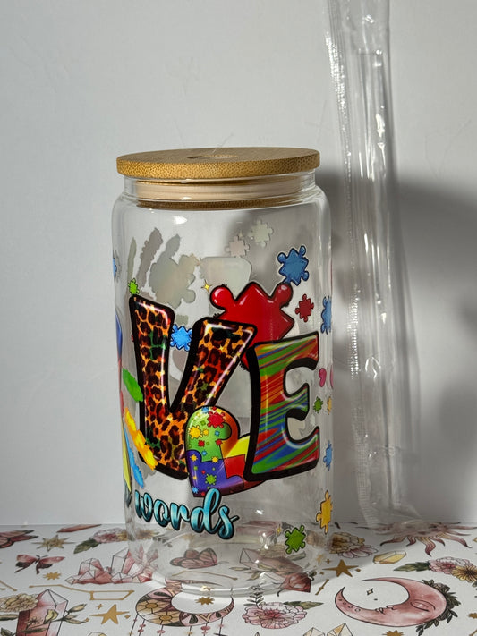 16oz Love Needs No Words Can Glass